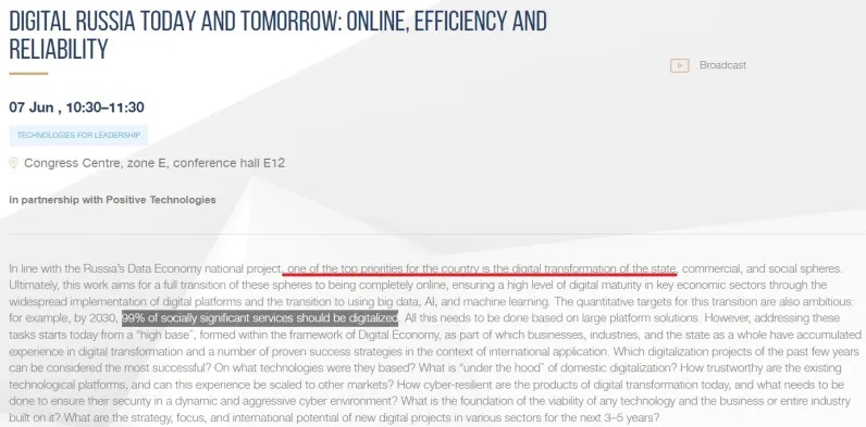 Ruskej „digitálnej transformácii“ sa bude na SPIEF '24 venovať osobitná pozornosť. V konečnom dôsledku musia všetci zainteresovaní spolupracovať, ak chcú do roku 2030 digitalizovať takmer všetky „spoločensky dôležité“ služby: