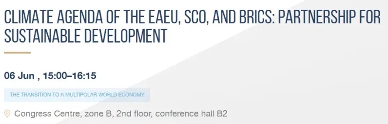 Rozvojové stratégie pre výrobné a dodávateľské reťazce sú vypracované s prihliadnutím na globálne ciele Parížskej dohody a národné plány na zníženie emisií a prispôsobenie sa klimatickým zmenám. Vhodné prístupy a tempo regulácie uhlíka medzi členskými štátmi EAEU, SCO a BRICS umožnia vybudovať globálny systém regulácie uhlíka založený na spravodlivom energetickom prechode vrátane prechodových technológií a rešpektovaní princípov multilaterálneho obchodného systému a technologickej neutrality. Pre EAEU je konvergencia prístupov k regulácii klímy dlhodobou prioritou. […] Prispejú trhové mechanizmy oceňovania uhlíka k dosiahnutiu klimatických cieľov v krajinách SCO, EAEU a BRICS a aká je spravodlivá cena uhlíka?